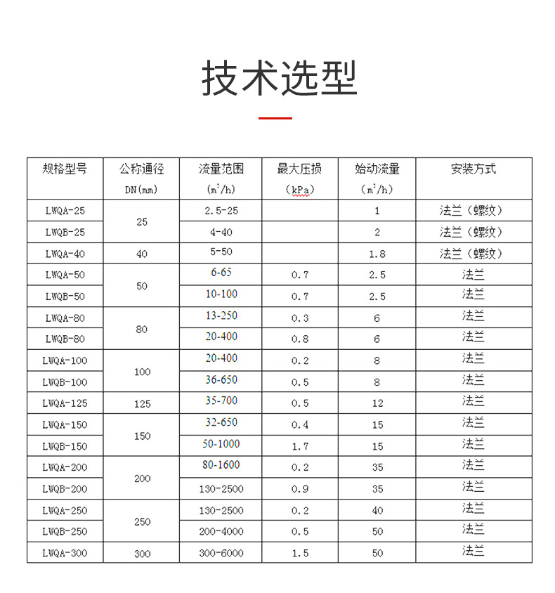 1)要求流量范圍度小于依照表1,且對始動流量有較嚴(yán)格的場合。