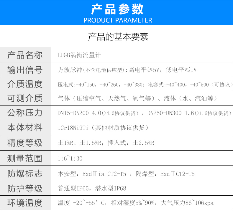 1.LUGB/E系列滿管型渦街流量儀表